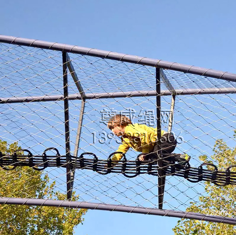 游樂(lè)園防護(hù)繩網(wǎng)采用優(yōu)質(zhì)不銹鋼絲繩和鋁鎂合金卡扣結(jié)合經(jīng)特殊工藝編織而成。是不銹鋼繩網(wǎng)的一種。
