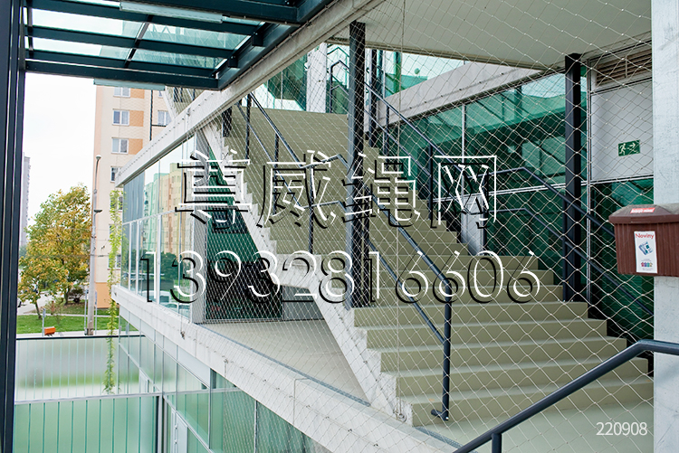 建筑裝飾防護(hù)網(wǎng),主要用于工廠、車間及倉庫間設(shè)備與設(shè)施的防護(hù)與保護(hù)場(chǎng)合。常用鋼材所制,如圓鋼管,方鋼管或壓型鋼板。表面處理工藝:全自動(dòng)靜電粉末噴涂(即噴塑)或噴漆。室外用防撞護(hù)欄的表面處理所用原料為防水性的材料。制成防撞護(hù)欄外形美觀,且不易生銹。防撞護(hù)欄的立柱通過膨脹螺栓與地面固定。通常安裝于如物流通道兩側(cè),生產(chǎn)設(shè)備周邊,建筑墻角,門的兩側(cè)及貨臺(tái)邊沿等等。有效減免搬運(yùn)設(shè)備往來穿梭時(shí)帶來意外撞擊造成的設(shè)備、設(shè)施的損壞。另外對(duì)物流搬運(yùn)設(shè)備自身也起到防護(hù)作用。不銹鋼繩網(wǎng)(建筑鋼絲繩網(wǎng))(建筑柔性防護(hù)網(wǎng))(幕墻防護(hù)網(wǎng))是由不銹鋼繩上下絞織與鋼套擠壓而成,鋼絲繩直徑有1.0、1.2、1.5、1.6、2.0、2.4、2.5、3.0、3.2、4.0、5.0mm等,其次我們還可以提供熱鍍鋅鋼絲繩網(wǎng)產(chǎn)品。鋼套材質(zhì)主要采用不銹鋼套,其它還有鋁套、銅套、銅鍍錫套以供客戶選擇。產(chǎn)品主要應(yīng)用于幕墻、安全防護(hù)、護(hù)欄、隔離網(wǎng)、建筑圍欄、外墻裝飾等。適應(yīng)于各種不同的建筑的外墻、樓頂、中鏤空等位置。