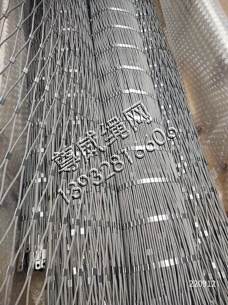 【安裝注意】:附件分布合理,注意承受力,網(wǎng)面展開角度合理,建議網(wǎng)孔展開角度為60-90度角。做到每個標準件和其它安裝附件,一定要安裝牢固。不銹鋼繩網(wǎng)連接一定要緊,不要有外露頭。