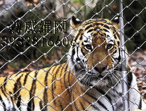 老虎籠舍圍網(wǎng)_獅虎園圍欄網(wǎng)_華南虎圍網(wǎng) 老虎是大型兇猛貓科動物,攻擊性強,其籠舍圍網(wǎng)也必須選用較其他動物圍網(wǎng)結(jié)實耐用、抗拉力大的。貓科動物圍網(wǎng)是尊威不銹鋼繩網(wǎng)廠專業(yè)主推產(chǎn)品。用進口...